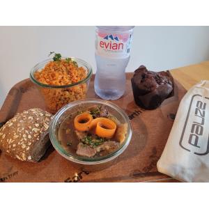 1 pain garni au choix - 1 dessert formule au choix - 1 boisson formule au choix